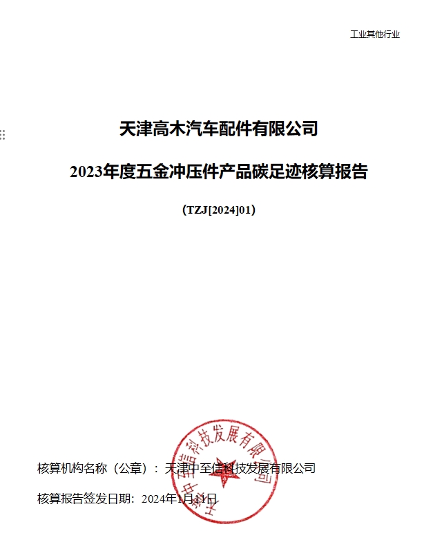 天津高木汽车配件有限公司2023年度产品碳足迹报告