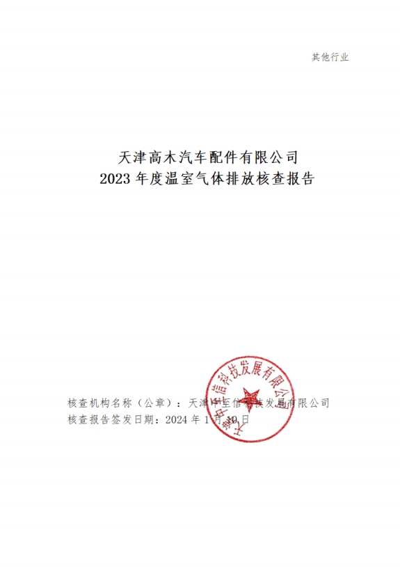 天津高木汽车配件有限公司2023 年度温室气体排放核查报告