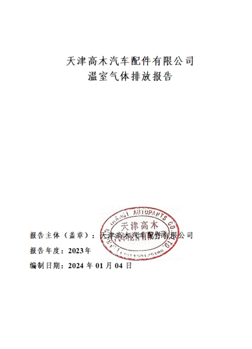 天津高木汽车配件有限公司2023年度温室气体排放报告