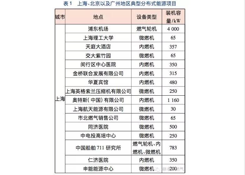 近几年来,随着北京天然气使用领域的扩展,北京市建设了一批天然气分布式能源项目,已建成投入运行的有11个项目,总装机容量约15452kW,超过了上海。